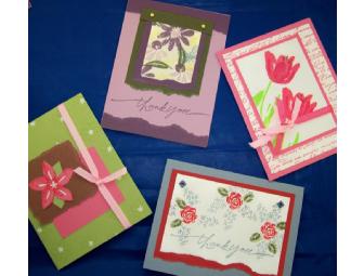 Set of 12 cards with envelopes. These elegant handmade cards are blank inside. There are 3 each of four designs.
