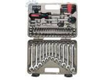 - Contains all the tools needed for most industrial applications, including 1/4", 3/8", and 1/2" quick-release ratcheting drives, with a wide selection of standard and deep sockets in the most common SAE and metric sizes.- Features 72-tooth ratchet drives for a 5 swing thats perfect in tight spaces.- 3/8" drive 12-point sockets to increase fastener contact area for maximum torque.- Durable storage cases have raised-letter ID for each tool location, so theyll stay organized, plus tools lock securely in place, a true benefit for work vehicles or other places where tools get knocked around.- All tools in this set meet stringent new ANSI and ASME specifications and come with a full satisfaction guarantee.Set Includes:(3) Drivers (1/4, 3/8, 1/2)(4) Extenders, (1) 3/8" TO 1/4" DRIVE ADAPTER(22) 1/4 Sockets(12) Deep/24 Sockets) 3/8 Sockets(10) 1/2 Sockets(2) Spark Plug Sockets 5/8 and 13/16(1) 8 Adjustable, (1)10 TandG, (1) 8 Long Nose Pliers(1) Magnetic Bit Driver and (40) Bits, (4) plastic holders(4) Mag Screwdrivers, (24) Hex Keys (SAE/Metric), (2) plastic holders(12) Combination wrenches (5/16",3/8",7/16",1/2",9/16",5/8",8MM,10MM,12MM,13MM,14MM,15MM)(1) Storage Case