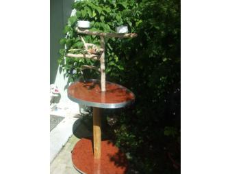 This stand is for medium to large birds such as Cockatoos, African Greys, etc. Perches made in U.S. from Bottlebrush. Made by Wayne's Parrot Stuff - visit www.waynesparrotstuff.com to find out more about this product.