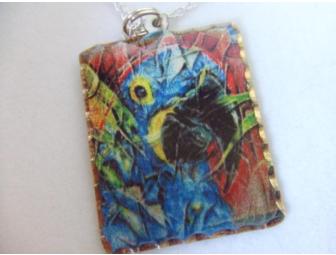 Unique gift idea for art lovers and animal lovers. Nickel pendant with fine silvertone chain and enameled images of Naza's painting.