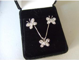 Sterling Silver & CZ Butterfly Necklace & Earrings Set
