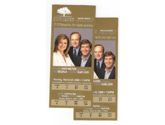 For all of you political junkies out there, here are 2 tickets to see the inimitable Arianna Huffington interview Paul Begala of CNN and Tucker Carlson of MSNBC for a night that promises to be both fascinating and amusing! Part of the AJU Public Lecture Series.