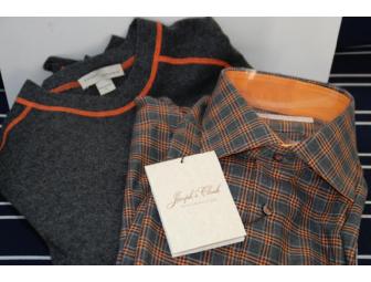 Kinross Men's soft cashmere sweater, and Joseph's Cloak hand-tailored shirt.