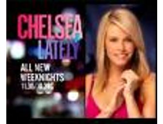 E!'s late-night half-hour sensation Chelsea Lately features quick-witted commentary, celebrity news and refreshing pop-culture perspective from comedian and author Chelsea Handler. Two VIP audience tickets to the hit show Chelsea Lately and two Chelsea Lately long sleeve shirts (one male, one female) and a signed photo of Chelsea.