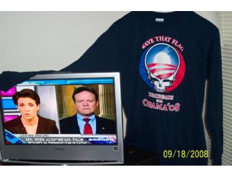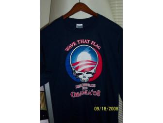 Deadheads for Obama TShirt from San Francisco concert on Feb. 4 of this year. Medium size, long sleeve, 100% cotton, pre-shrunk but never washed (or worn!! ;) Designs on both sides, date and location printed on back, LARGE Obama/Deadhead "Skull" on front. These sold out quick at the show, so they're definitely an almost-one-of-a-kind piece of memorabilia!