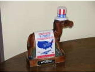 Rare and hard to find, Ezra Brooks Democratic National Convention Decanter. This little donkey is in mint condition with his tax tags still on him. He will make a great centerpiece for your Dem parties or he looks great on the book shelf or desk. He makes a great gift for those special Dem friends or family members in your life. Unique and beautiful piece.