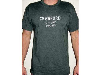 This is an incredibly soft, 50/50 American Apparel t-shirt from the award-winning documentary film, CRAWFORD, which has been praised at at over 30 film festivals, including this year's Netroots Nation. Size medium. The back of the shirt is solid green. Check out the CRAWFORD trailer at www.crawfordmovie.com. Contact liveactionprojects@gmail.com for more info about release dates, dvds and t-shirts.