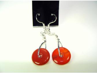 These earrings might just be that special added touch to finish your ensemble for NN09 or that dKos meetup you're going to attend. The polished carnelian donuts hang 1 1/2 inches from the French wires. The findings are silver-plated, and I've included clear rubber stoppers to keep the earrings where they belong.