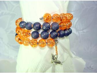 Are you looking for that special piece of jewelry to wear with your MoJo Friday T-shirt? Here it is! Crackled orange and charcoal gray with silvery crackled glass beads on memory wire, with a charming silver-plated seal of approval.
