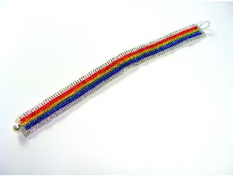 Do you have a beloved pet waiting for you beyond The Rainbow Bridge? Want to show some Pride? Just like rainbows? This bracelet is made of itsy-bitsy, teeny-tiny Japanese Delica seed beads, and measures 7 1/2 inches when closed with the silvery glass bead and Delica loop clasp.