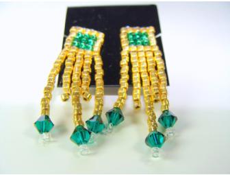 These May birthstone earrings are made just for you with Delica seed beads and emerald Austrian crystal beads on gold-plated posts.