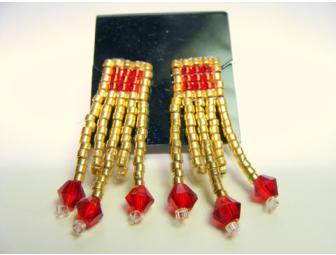 These July birthstone earrings are made just for you with Delica and Toho Treasures seed beads and ruby Austrian crystal beads on gold-plated posts.