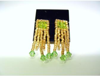 These August birthstone earrings are made just for you with Delica and Toho Treasures seed beads and peridot Austrian crystal beads on gold-plated posts.