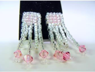 These October birthstone earrings are made just for you with Delica seed beads and pink Austrian crystal beads on silver-plated posts.