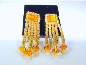 These November birthstone earrings are made just for you with Delica seed beads and topaz Austrian crystal beads on gold-plated posts.