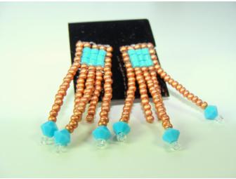 These December alternative birthstone earrings are made just for you with coppery Czech seed beads and blue turquoise Austrian crystal beads on gold-plated posts.