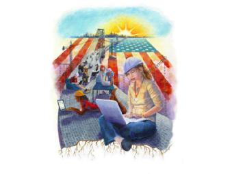 This one of a kind painting is the original artwork commissioned by Yearly Kos for the 2007 convention in Chicago. Painted by Cassandra Seeger, a San Francisco-based artist with a background in fine art, illustration, and dance. She comes from a family with a long-standing tradition of progressive thought and action. This illustration is her vision of how the actions of the Netroots community are renewing hope and building a foundation for a more enlightened future.