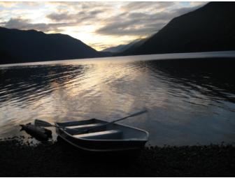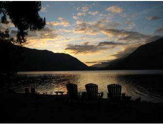 These are two photos that the artist LuAnn Wolfe took on September 28th, 2008 at the Lake Crescent Lodge, in Lake Crescent, Washington. The photos will be mounted together in one frame, are each 5x7, and matted nicely. The frame will be black. This is a peaceful setting and the photos show a sunset over the lake.