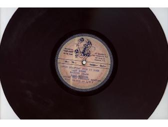 Although both sides of the disk are still playable (at 33 rpm with a standard needle, not an LP needle), there is moderate to very heavy surface noise throughout. This may be lessened if the disk is professionally cleaned, something that I have not ventured to attempt. The record and its jacket have a rather musty smell, and it appears in places to have been rubbed or pressed with some force, as if kept under a pile of other records for a long time. The volume of the different songs varies somewhat, which is one reason I think each song may have been copied from a different source. Thus, some surface noise may have been present on the originals being copied rather than deriving from the state of this particular disk.
