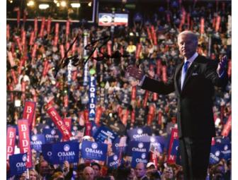 This exclusive photo was taken by official DNC photographer, Mona T. Brooks, from backstage at the Pepsi Center of Joe Biden on Wednesday, August 27th, 2008. Joe Biden has signed the photo in the center area. Photo size is 8x10.