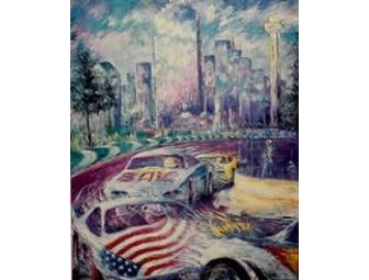 Dove specializes in different sporting events and develops his original oil paintings into commemorative prints. In this 22x28 print, Dove captures the essence of the final Dallas Grand Prix Trans Am Race as the official artist in 1994.