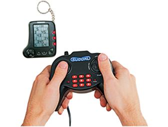 Play over 1,000,000 random puzzles at 3 different levels- Beginner, Medium, and Expert. Plugs into auxillary input jacks on TV for easy set-up. Comes with a bonus Sudoku key chain!