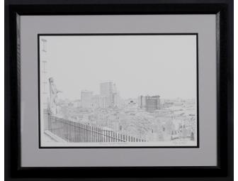 The late Marjorie Vogel’s clients included the Smithsonian, the US Capitol, the Jimmy Carter Center and the JFK Library. She studied The Arts throughout the US and abroad. Truly a world traveler, she chose to make her home here in the Ocean State. This limited-edition print of a pen-and-ink drawing depicts Providence’s Prospect Park – where Roger Williams’ statue overlooks the city he founded.
