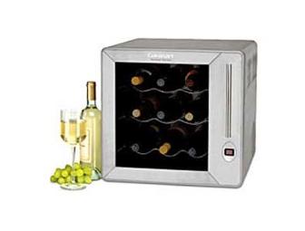 CUISINART FEATURES- Private Reserve Wine Cellar Cuisinart presents an alternative to expensive, full size wine cellars with the Cuisinart Private Reserve Wine Cellar. Traditional stainless steel styling and the option of soft interior lighting, beautifully display up to 11 bottles of wines and champagnes. Patented temperature control guarantees that different varieties are stored at ideal serving temperatures. Thermoelectric compressor-less cooling makes this countertop cellar lightweight, easy to carry....and quiet! Features include 8 presets for proper serving and storage temperatures for any variety of white or red wine, 3 removable chrome racks designed to hold 750ml or 1500 ml bottles, double pane tinted viewing window and ability to adjust temperature manually...