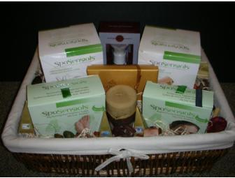 Pamper yourself with Hand and Foot Treatments! Also included in the basket: Candle, Godiva chocolates and more!