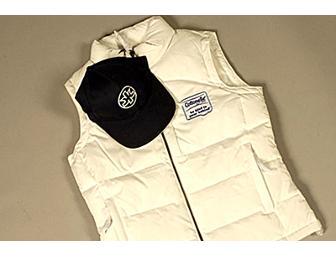 #68 - Women's White down COTTONELLE Logo Vest-Size Small and hat