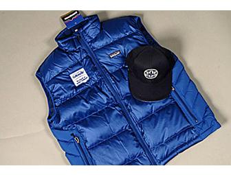#107 - Blue Men's Down Vest with COTTONELLE Logo-Size Large and hat