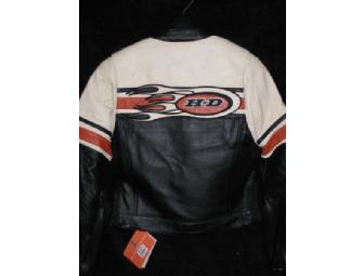 Women's Black & Cream "Torque" Leather Harley-Davidson Jacket-- Women's Medium
