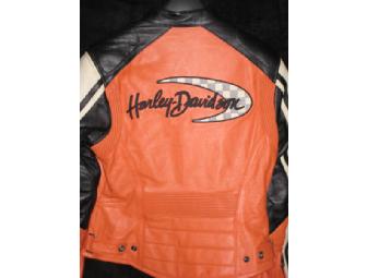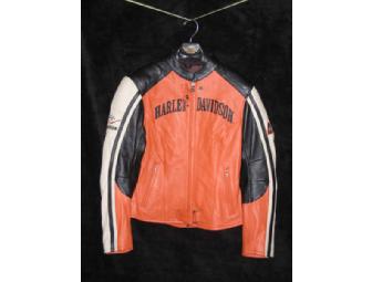 Women's Orange & Black Leather Harley-Davidson Racing Jacket-- Women's Medium
