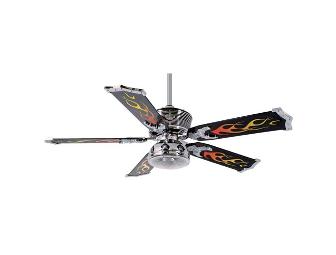 It's not only Harley-Davidson "cool", it'll keep you "cool" as well! Be the first on your block to have this 52" chrome Harley-Davidson ceiling fan with reversible blades--glossy black and chrome finish trimmed with chrome eagle bar & shield reliefs, or red and orange flames.