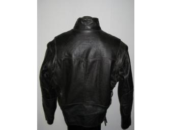 Here's your chance to own an authentic Harley-Davidson jacket--featuring distressed leather and a vintage-look. The jacket has tie-up sides, and zip sleeves with two front zip pockets.