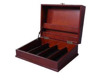 Great for storing anything small--use this caddy for anything. Mahogany finish.
