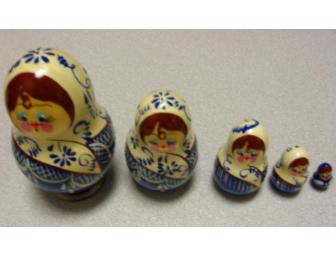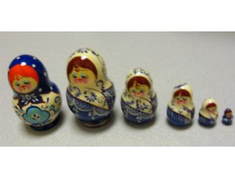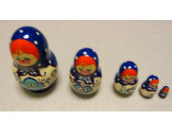 Each doll has 5 dolls. The largest doll is 4" high and 2" diameter, she nests the other dolls which range from 2 1/2" high and 1 1/4" diameter, 1 3/4" high and 1" diameter, 1" high and 1/2" diameter, and the wee baby is 1/2" high and 1/4" diameter.