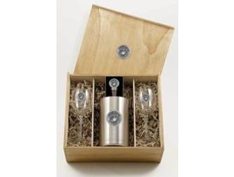 This Boxed Wine Set is the top choice for your wine loving friends. This set includes two goblets, a wine chiller and a bottle stopper all decorated with a Michigan State pewter applique.