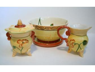 Artist Elizabeth Munro has said her inspiration often comes from her love of gardening and traveling the world. This set from the Poppy Montage collection includes 7" diam. Berry Bowl, Sugar and Creamer
