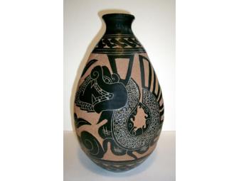 This Pre-Columbian Inspired Pottery was made by a Nicaraguan Artist. The design is based on an ancient serpent entitled "Dragon"