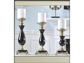 Black with antique silver polystone pillar candle holders. Set of 3.