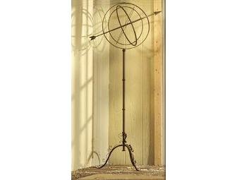 Rustic Brown Iron Armillary Sphere on Stand. Can be used indoors or outdoors.