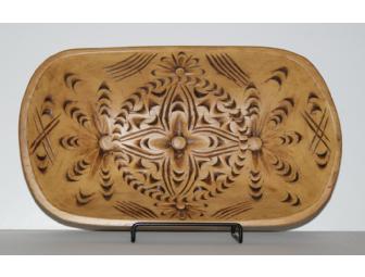 Decorative Treenware Bowl. Comes with display stand. Approx, size 9" x 15".