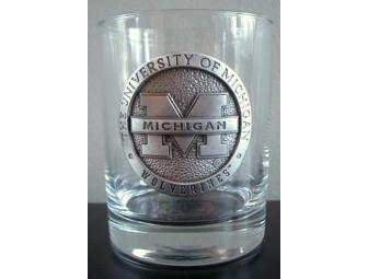 Set of (4) University of Michigan Double Old-Fashioned Glasses with pewter emblem