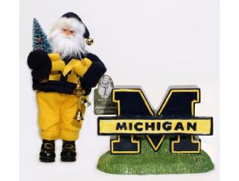 10" University of Michigan Santa Claus and a ceramic block M bank.