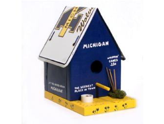 Feathered friends will flock to your yard. This hand painted birdhouse has a Michigan Wolverines license plate roof. Approx. 9"h x 5.5"w x 8"d.