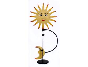 The sun and moon are balanced on a metal stand. Can be set in motion by a touch of your hand. Approx. 25" high.