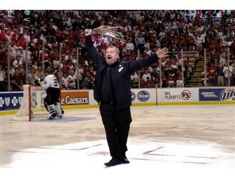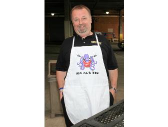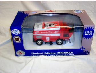 Red Wings fans start cheering for this great item! A Big Al's BBQ apron signed by Red Wings Zamboni driver Al Sobotka. Sobotka is known mostly for driving the Zamboni during Detroit Red Wings games for the past 30 years and for collecting the octopuses thrown on the ice during Red Wings playoff games. The official mascot of the Red Wings is named after Sobotka. Your item also includes three Red Wing Dish towels and a Limited Edition Die Cast Red Wings Zamboni.