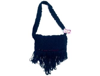 One cream and one black, these bags designed by the Bag-Hag by Jessica designs beautiful feminine handbags created from large panels of yarn embellished with beautiful beads, long fringe and jewelry. Each handbag is unique, colorful and fully lined in soft beautiful velvet or animal prints that feature their signature butterfly appliqué.