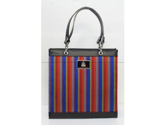 Pangborn Design black leather and silk tote. Measures approx. 10" x 10".
